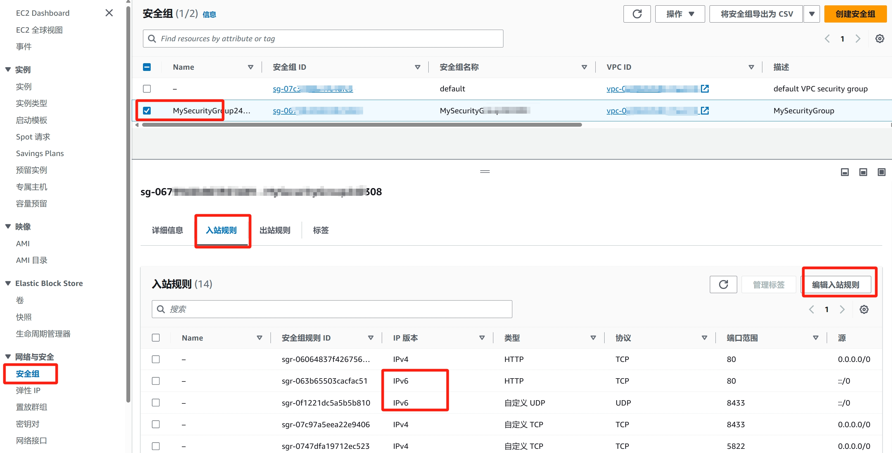 注意:只有EC2有IPv6,Lightsail没有